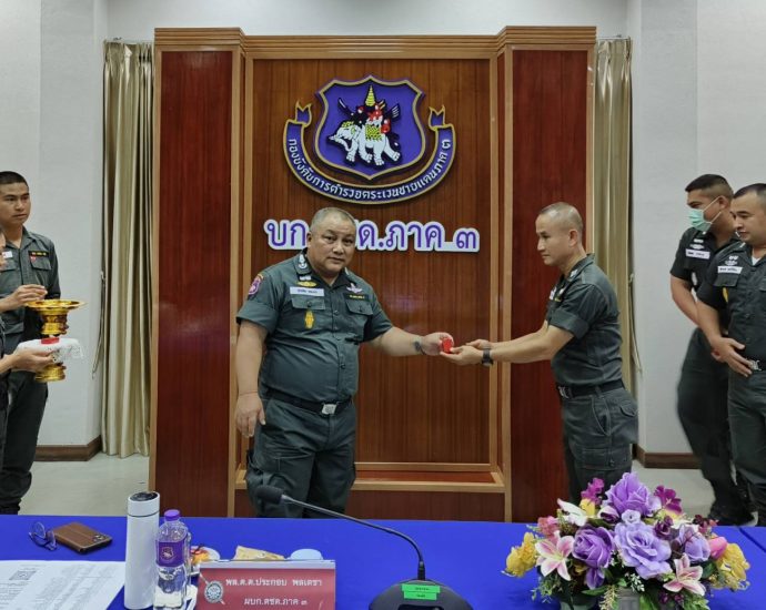 เมื่อ 13 ก.ค.66 พล.ต.ต.ประกอบ พลเตชา ผบก.ตชด.ภาค 3 ได้เป็นประธานในพิธีพร้อมดัวยข้าราชการตำรวจในสังกัด บก.ตชด.ภาค 3 ร่วมจัดกิจกรรม “วันกองบังคับการตำรวจตระเวนชายแดนภาค 3” ณ กองบังคับการตำรวจตระเวนชายแดนภาค 3 โดยในพิธีประกอบด้วยการสักการะพระพุทธรูป พระสยามเทวาธิราช พระราชชายาเจ้าดารารัศมี พระภูมิ เจ้าที่ พร้อมอ่านสาร ผบก.ตชด.ภาค 3 พร้อมมอบโล่ และหนังสือประกาศเกียรติคุณแก่ข้าราชการตำรวจที่ได้รับรางวัลดีเด่น และได้นิมนต์พระสงฆ์ จำนวน 9 รูป เพื่อเจริญพระพุทธมนต์อุทิศส่วนกุศลผู้วายชนม์ ผู้ร่วมพิธีประกอบด้วย ข้าราชการตำรวจในสังกัด บก.ตชด.ภาค 3 และแม่บ้านตำรวจ บก.ตชด.ภาค 3Continue Reading