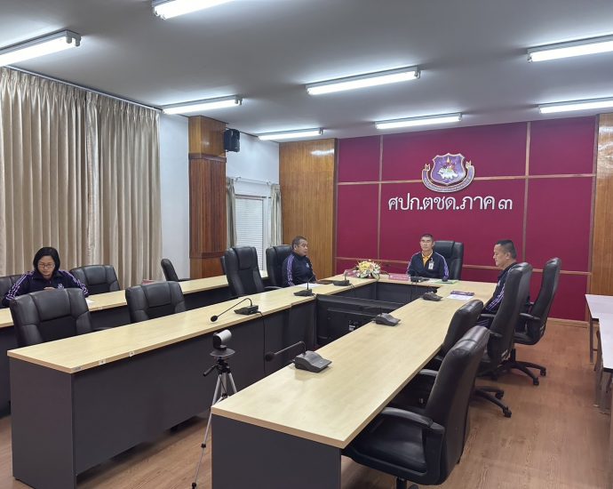 เมื่อ 21 มิ.ย. 67 เวลา 17.00 น. พ.ต.อ.วิศาลพงศ์ สร้อยกุลบดี รอง ผบก.ตชด.ภาค 3, สว.ฝอ.บก.ตชด.ภาค 3 (ผงป., กบ.) พร้อมด้วยเจ้าหน้าที่งานที่เกี่ยวข้อง เข้าร่วมประชุมทางไกล (Video Conference) เฝ้าฟังพิจารณาร่าง พ.ร.บ. งบประมาณรายจ่าย ประจำปีงบประมาณ พ.ศ.2568 (วาระที่ 1) ณ ห้องประชุม ศปก.ฯ โดยมี พล.ต.ต.ปรีดา สถาวร รอง ผบช.สกพ. เป็นประธานในระดับ ตร., พล.ต.ต.กัญชล อินทราราม รอง ผบช.ตชด. เป็นประธานในระดับ บช.ตชด.Continue Reading