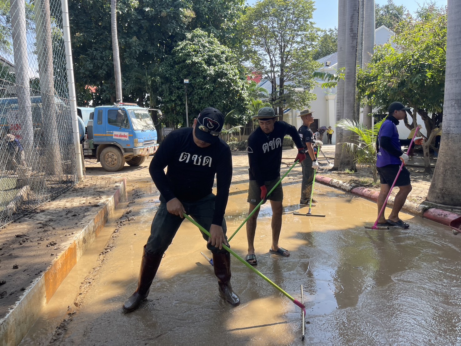 ร่วมกับ กก.ตชด.33,อบจ.เชียงใหม่,ประชาชนจิตอาสา, คณะครู และบุคลากรโรงเรียนปรินส์รอยแยลส์วิทยาลัย เข้าขุดลอกรางระบายน้ำเนื่องจากมีดินโคลนอุดตันในรางระบายน้ำ