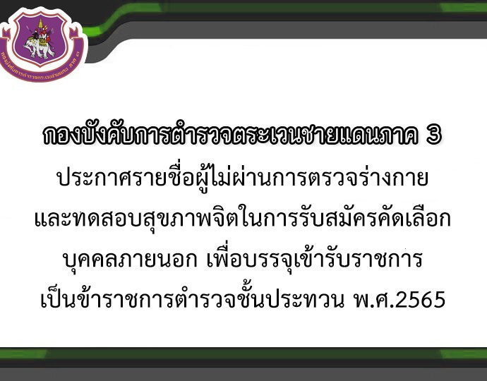 สงวนลิขสิทธิ์ 2569 กลุ่มงานเทคโนโลยีสารสนเทศ ฝ่ายอำนวยการ กองบังคับการตำรวจตระเวนชายแดนภาค 3