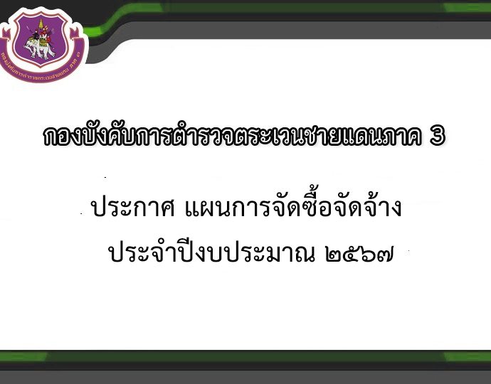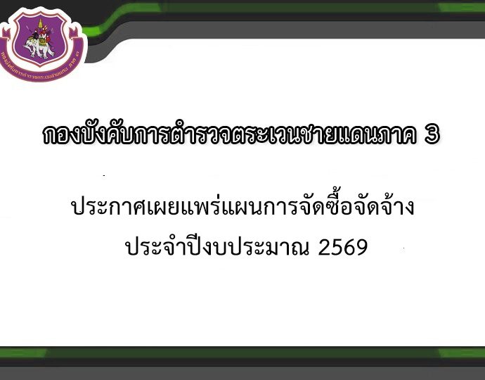 ประกาศ บก.ตชด.ภาค 3 เผยแพร่แผนการจัดซื้อจัดจ้าง ประจำปี 2567Continue Reading
